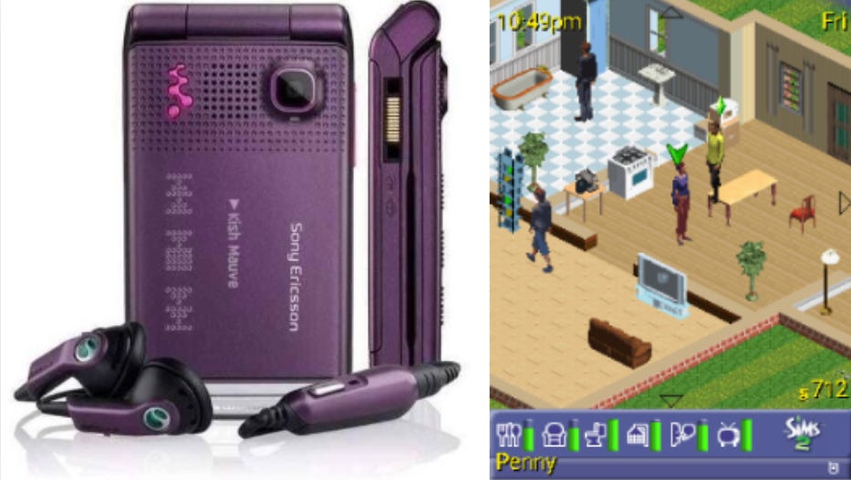 A minha mãe teve em algum momento o celular que era uma das coisas mais iradas que a tecnologia tinha a oferecer: um Sony Ericson W380 roxo. Ser um celular dobrável colorido já concedia a ele um status muito acima dos outros, mas o que realmente elevava esse aparelho era a tela na parte externa que informava, entre outras coisas, a música que estava sendo tocada no momento, possuindo até controladores para pausar e passar músicas. Como se não fosse o bastante, esse celular vinha com uma versão móvel de The Sims 2, jogo que eu já conhecia graças a mídia física de computador, acompanhada da expansão “Vida de Universitário”, que eu tinha ganho de presente do meu primo mais velho na mesma época. Em algum ponto, eu descobri que a maioria dos celulares funcionavam no sistema Java e eu podia inclusive baixar jogos novos pelo navegador.