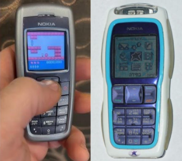 Em qualquer evento que eu ficasse entediado por um segundo que fosse, corria até o adulto mais próximo e perguntava: “seu celular tem joguinho?” A resposta, quando negativa, era devolvida com um condescendente: “tem sim, você é que não sabe”. E de fato, quase todo celular da época vinha com algum jogo pré-instalado e a diversão era descobrir qual. Eu começava a colecionar esses jogos como figurinhas de um álbum, e a grande maioria era repetido, como incontáveis versões de Tetris ou Snake — o jogo da cobrinha. Eu decorava quem tinha qual celular e qual celular tinha qual jogo, perseguindo os adultos que tinham meus jogos favoritos. Eu colecionava os celulares antigos de parentes, e desbravava os menus e funções. Lembro sempre do jogo Bounce presente nos celulares da Nokia, e do Nokia 3220, que era muito mastigável.